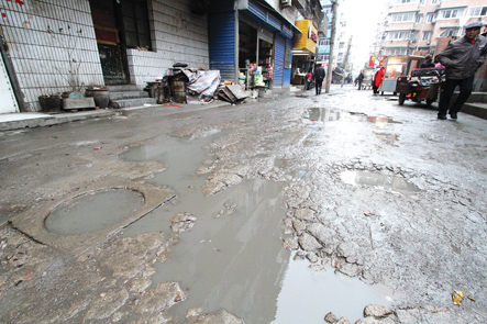 昨天,記者來到位于四季陽光小區(qū)西門外的這條支路,看到道路破損確實(shí)嚴(yán)重,沒走上幾步就出現(xiàn)一個大坑,有的坑中積滿了臟水,有的坑中填了些碎煤渣,巷子旁的一家幼兒園門前,幾只雞不停地啄著坑里的土。“這條‘鬧心路’,下雨天不知道滑倒了多少人。”長年在路口擺地攤賣些小雜貨的秦大媽說。 “這條路連著土鍋一條街和涂山路,是一條老路,曾經(jīng)叫南崗二路,每天有數(shù)萬人經(jīng)過這里。”高大姐在這條路上開了8年的小賣部,小店里常備一把手電筒,就怕夜里摔倒,她說最怕下雨天,“一下雨我就發(fā)愁,積水坑接二連三,顧客來買點(diǎn)東西還要蹚著泥水過,誰愿意來呢!經(jīng)常走這條路的周邊群眾都盼著能夠盡早修一修。