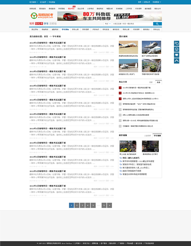 “駕照輕松考”可隨時為學(xué)員提供最新的學(xué)車動態(tài)、各駕校的價格、服務(wù),提供網(wǎng)上模擬考試,為學(xué)員提供全方面的服務(wù),讓學(xué)員能以最優(yōu)惠的價格選擇真正適合自己的駕校。本網(wǎng)站本著“服務(wù)駕校、服務(wù)學(xué)員、追求卓越、共同發(fā)展”的宗旨,通過優(yōu)質(zhì)、方便、快捷、專業(yè)的服務(wù)來實(shí)現(xiàn)真正的網(wǎng)上報名,同時本網(wǎng)還提供學(xué)車方面的各種知識,具體包括“學(xué)車動態(tài)”、“學(xué)車指南”、“駕駛常識”、“模擬考試”、“新車報價”等欄目,是學(xué)員學(xué)車的第一站。
